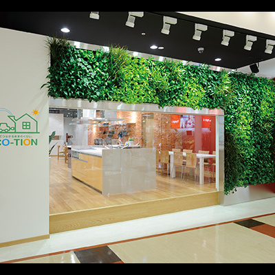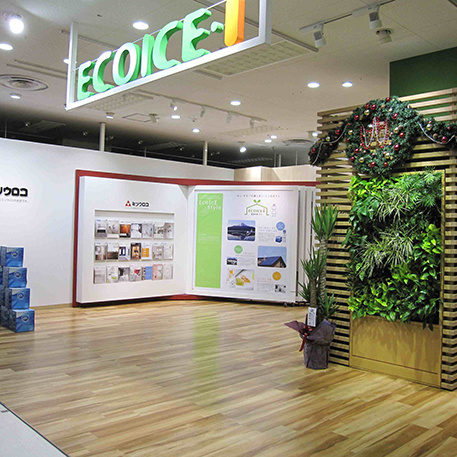 エコーションは、アリオ橋本へショッピングに訪れるお客様が、身近に最新の環境設備機器や最新の省エネ家電などに触れることを通じて「エコな生活」への関心を深め、住まい全体としての「エコな暮らし」に興味を高めてもらうように工夫されたショールームです。
